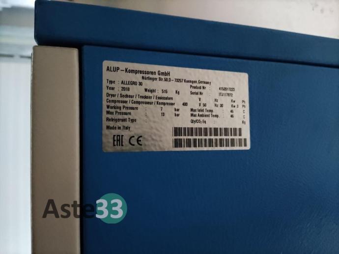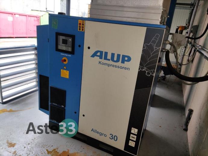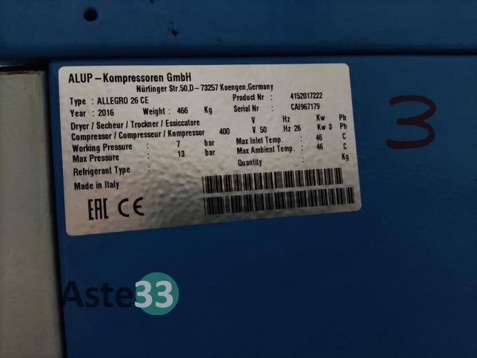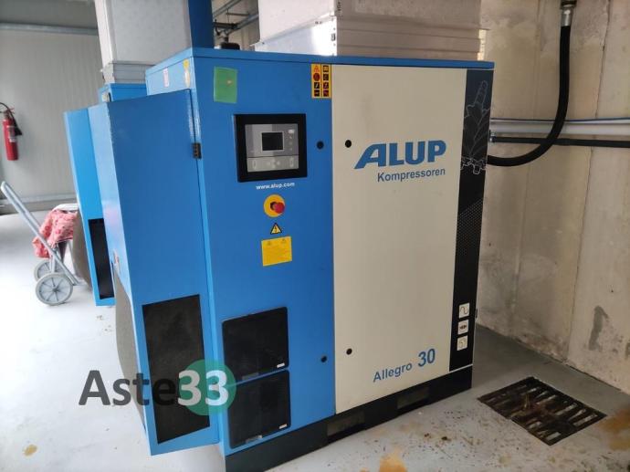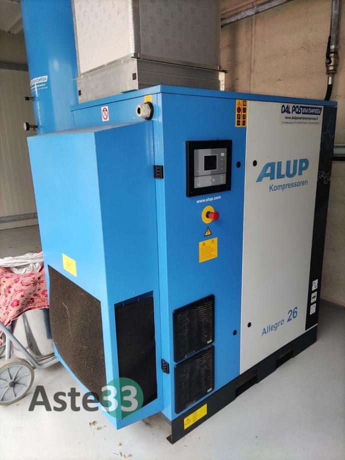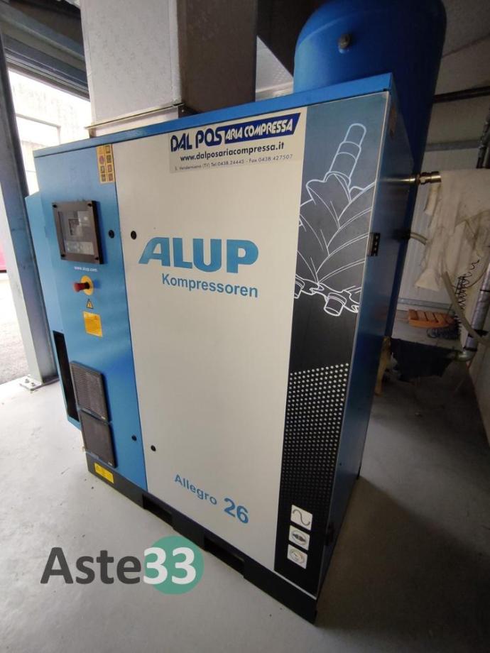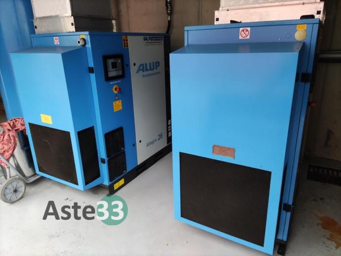 N. 2 compressori Alup, serbatoi per aria compressa, ventilatore, filtro Comsys
