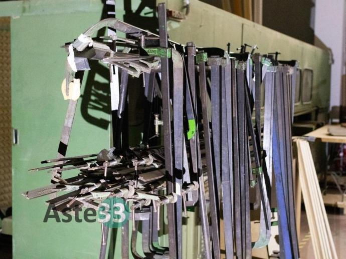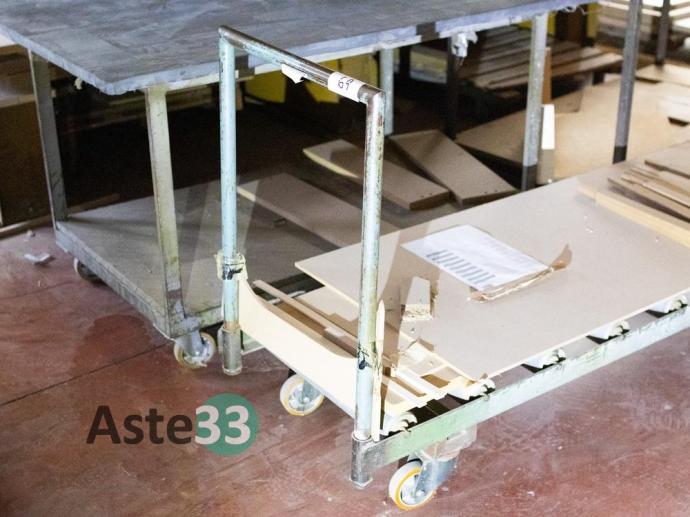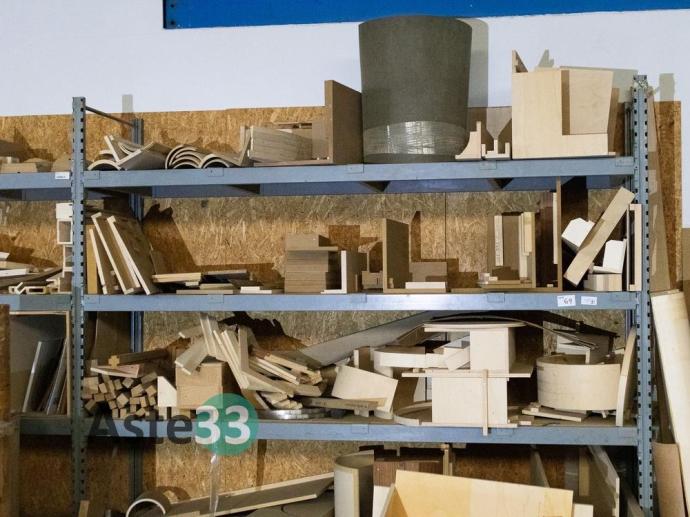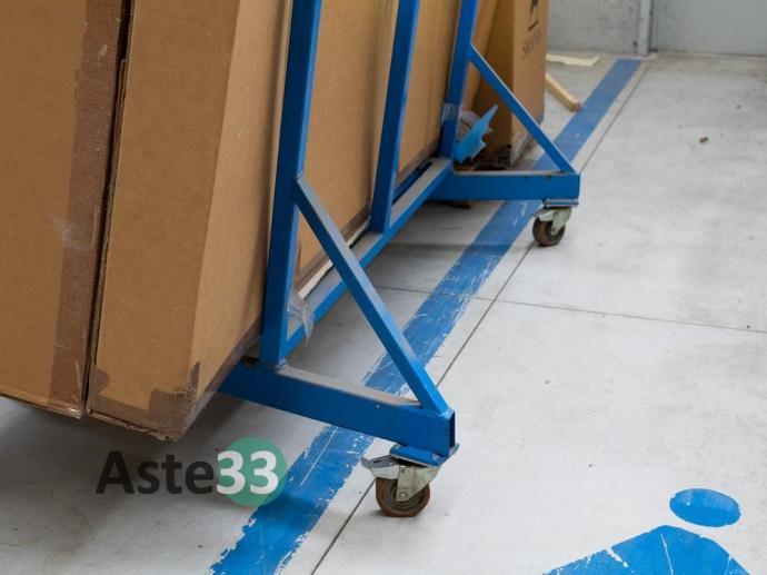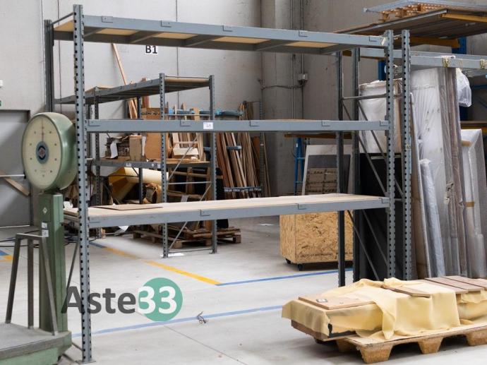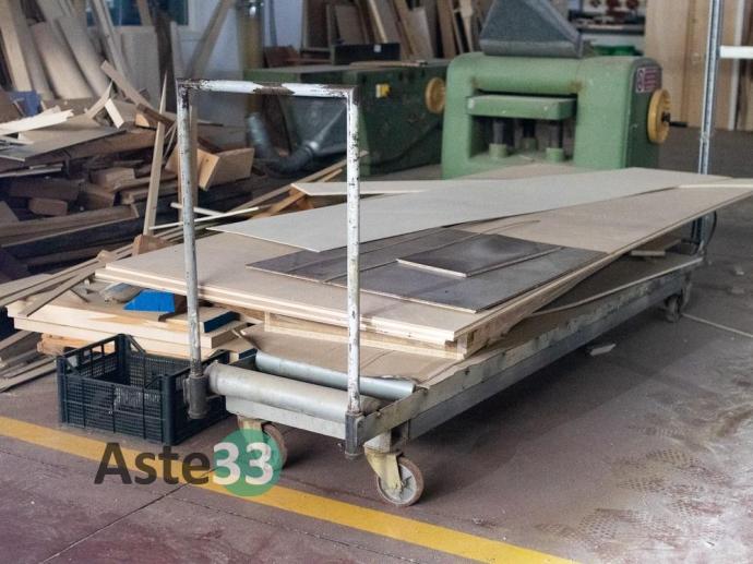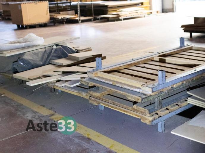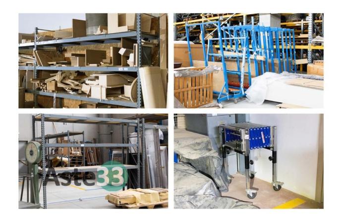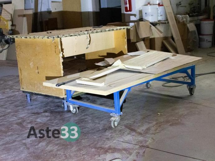 Scaffalature metalliche, banchi da lavoro, tavoli, attrezzature in sorte per falegnameria, arredo vario per zona produzione, carrelli e materiale in sorte