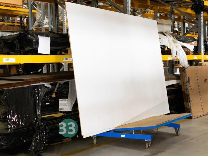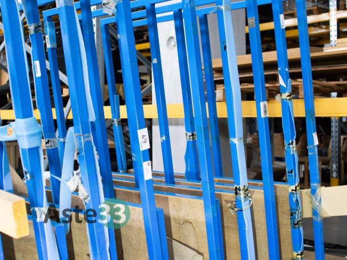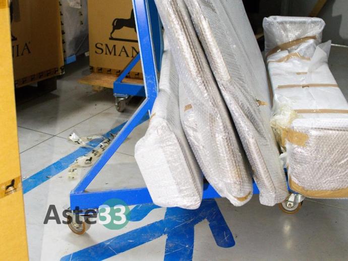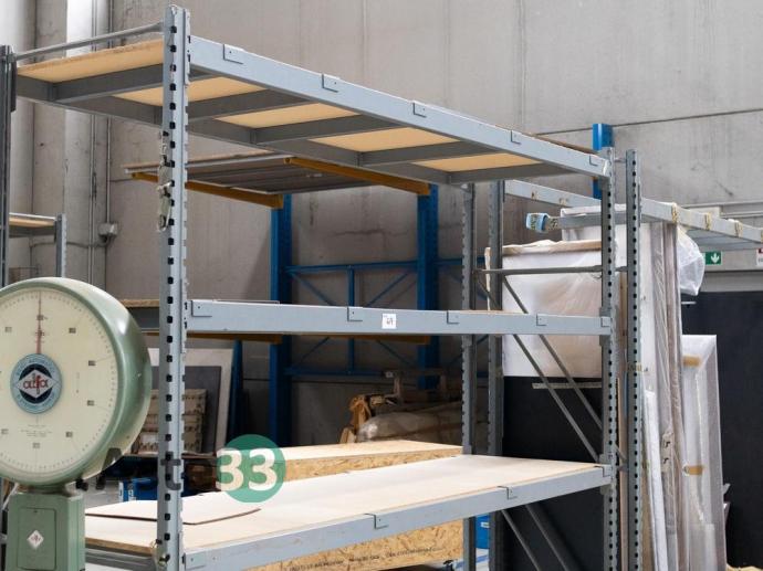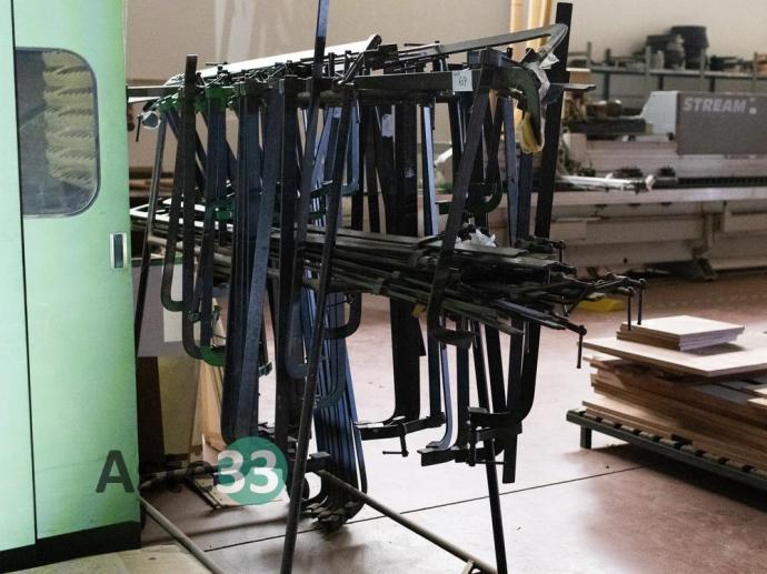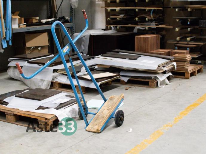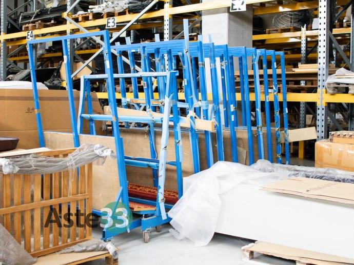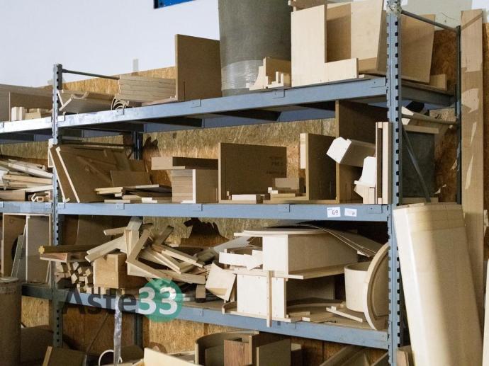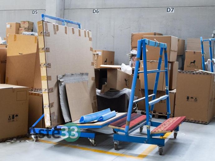Scaffalature metalliche, banchi da lavoro, tavoli, attrezzature in sorte per falegnameria, arredo vario per zona produzione, carrelli e materiale in sorte