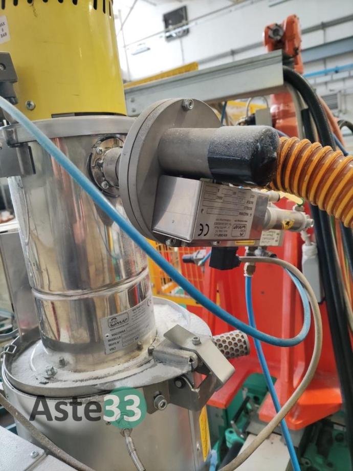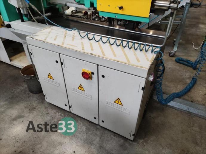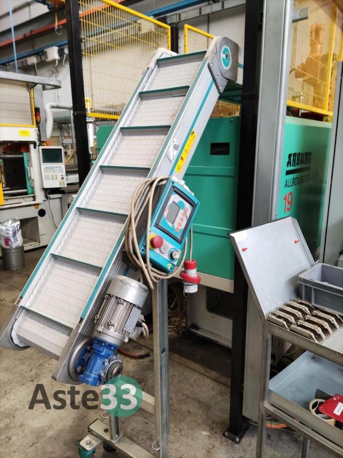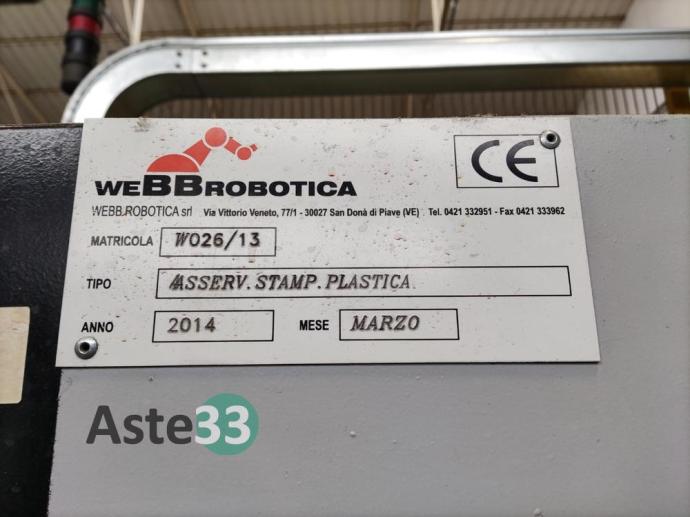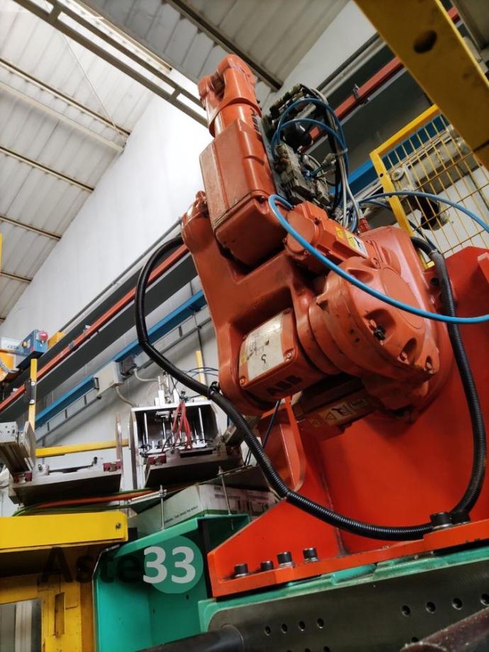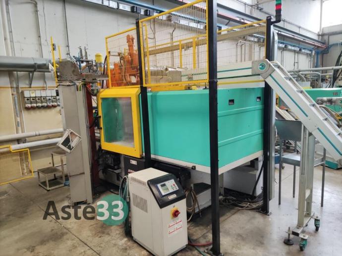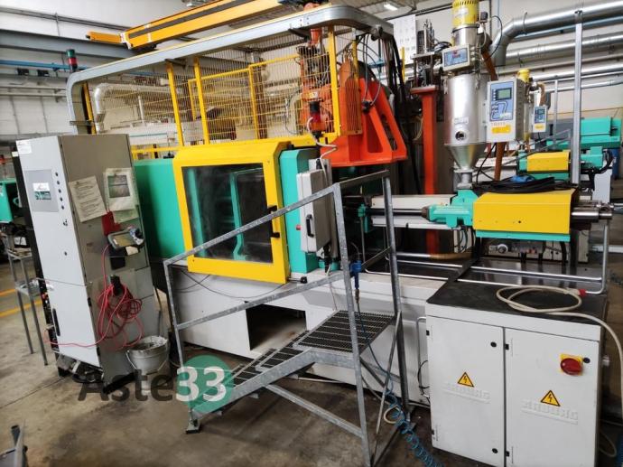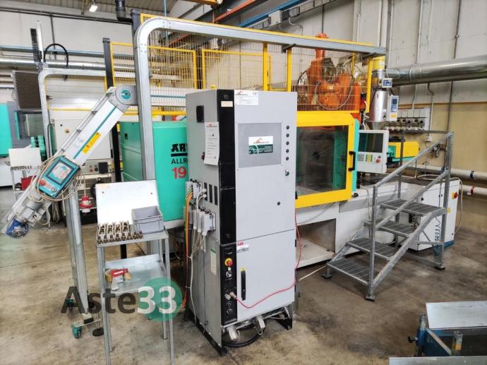 Pressa Arburg mod. 470 c 1500-675 con robot Abb, accessori new Omap, nastro trasportatore e n. 2 termoregolatori