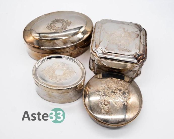 N.4 SCATOLE SILVER PLATED – N.3 CIOTOLE SILVER PLATED – N.1 SVUOTATASCHE SILVER PLATED – N.1 TAGLIACARTE SILVER PLATED – N.1 BROCCA SILVER PLATED