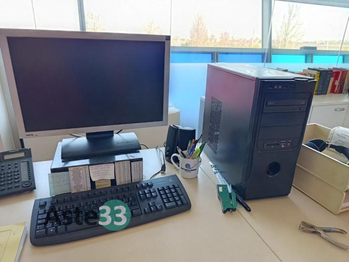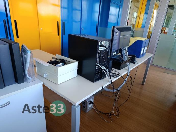 Arredamento per ufficio con pc, telefoni, n. 3 scrivanie e n. 6 armadi metallici