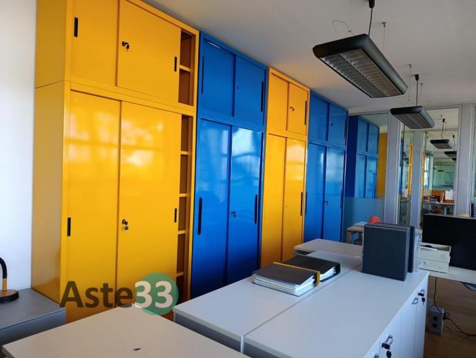 Arredamento per ufficio composto da mobili bassi, n. 5 armadi metallici, n. 2 scrivanie ed elle ed informatica