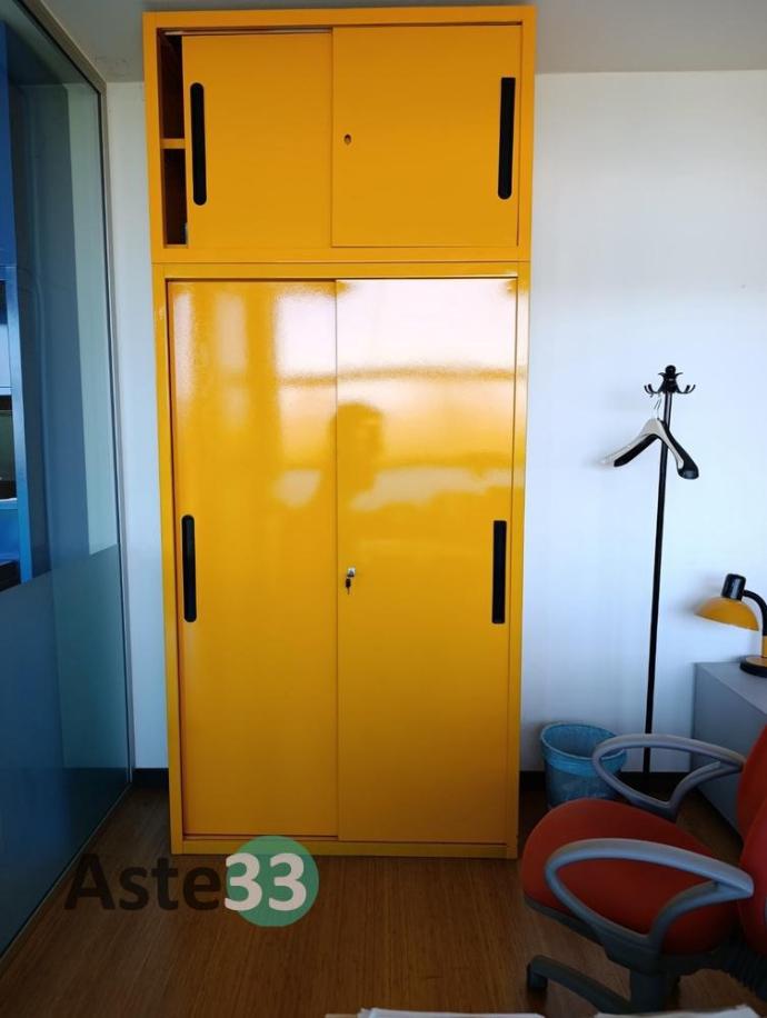Scrivania, mobile metallico a 2 ante scorrevoli, appendiabiti e bilancia Francopost