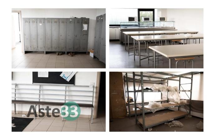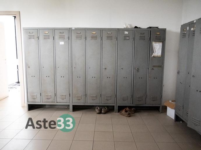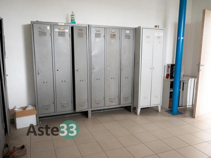 Arredamento per zona spogliatoi, n. 2 scaffalature metalliche ed arredamento per sala mensa