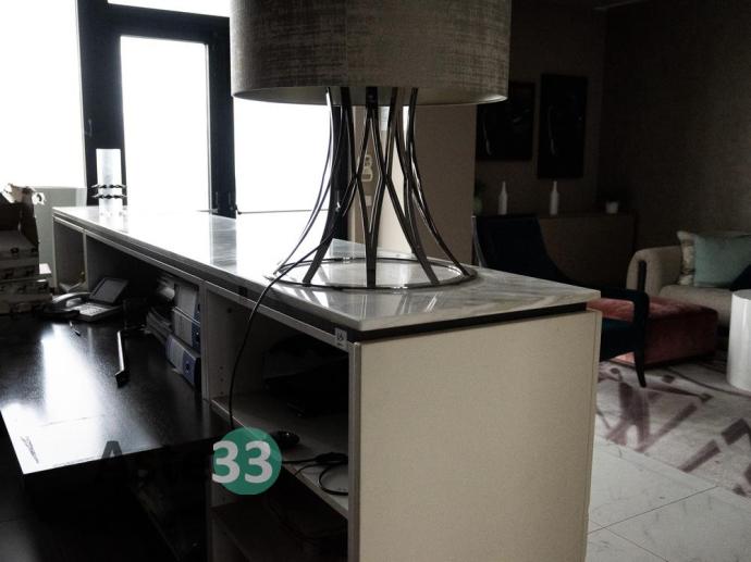 Arredamento per ufficio composto da n. 3 scrivanie, mobilia in sorte, abatjour, sedie in pelle stampa di coccodrillo