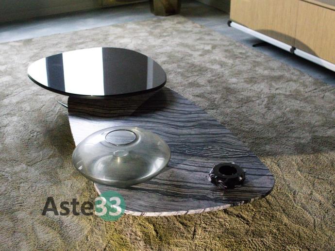 Frigorifero Beko, microonde Daewoo, macchina per caffè, specchi, sedia in vimini, divanetto intrecciato, tavolini e mobile a tre ante