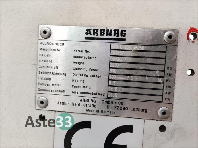 Pressa Arburg mod. 320 C 600-250 con accessori new Omap e termoregolatore Regloplas