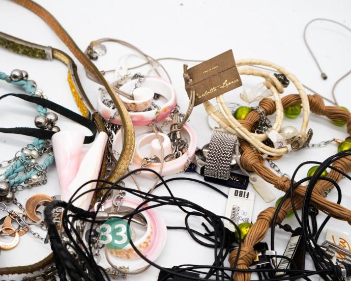 n.59 paia di orecchini – n.9 charms – n.68 braccialetti – n.43 collane – n.2 anelli – n.1 braccialetto con riporti in oro