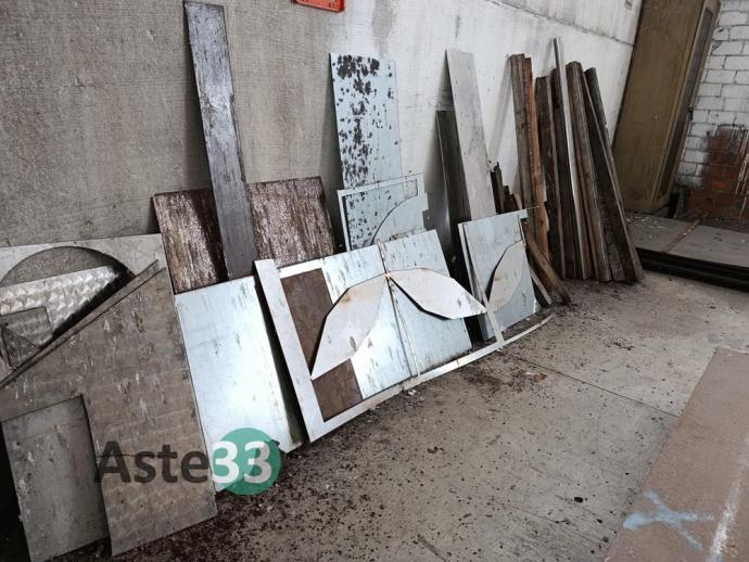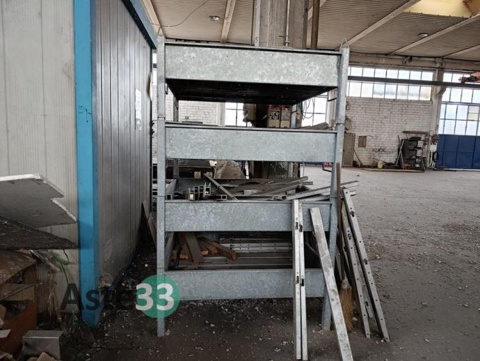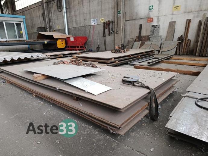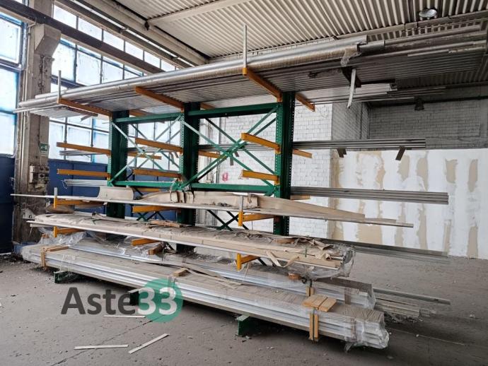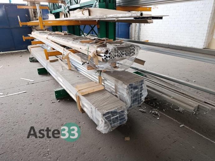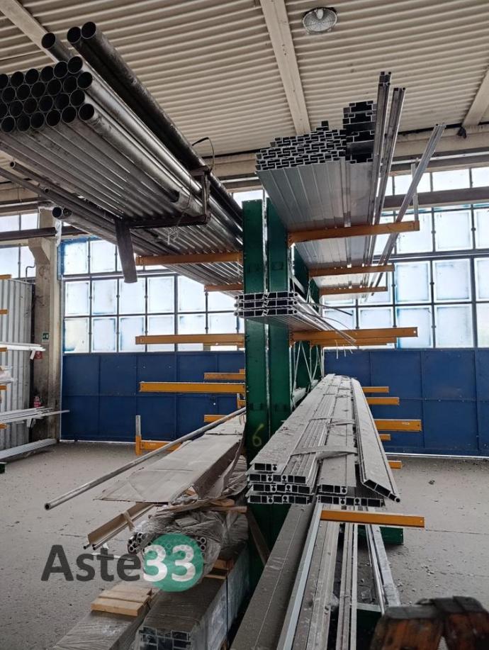 Giacenze di profilati in alluminio, lamiere metalliche, n. 7 cantilever, segatrice Tekna, taglio plasma Carbonini, trapano a colonna Serrmac ed attrezzature in sorte