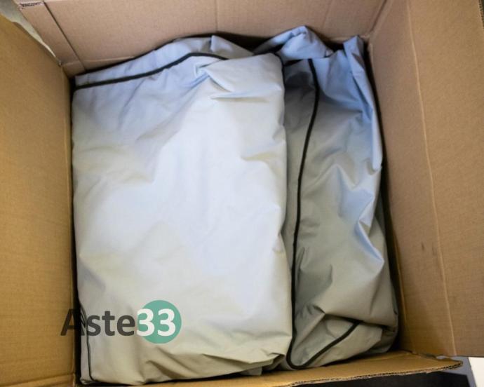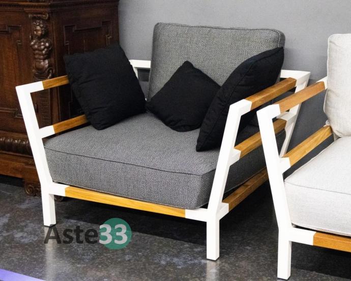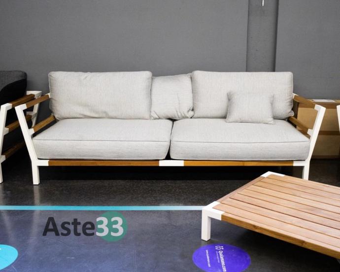 N.2 poltrone da esterno, divano da esterno, tavolino da esterno e n.3 coperture in tela impermeabile