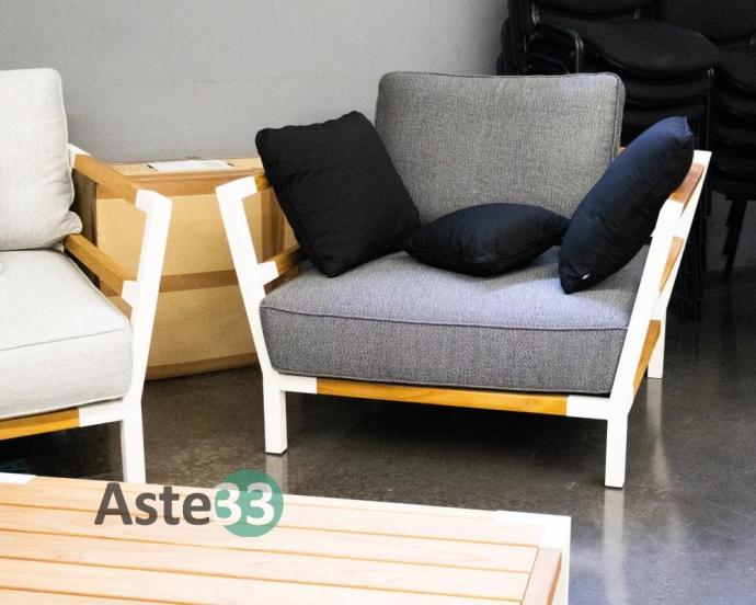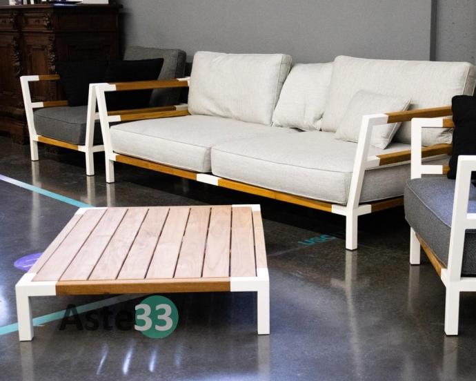 N.2 poltrone da esterno, divano da esterno, tavolino da esterno e n.3 coperture in tela impermeabile