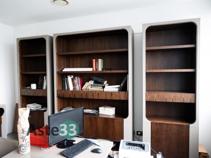 Arredamento per ufficio composto da n. 5 scrivanie, mobili con vani a giorno ed arredo in sorte