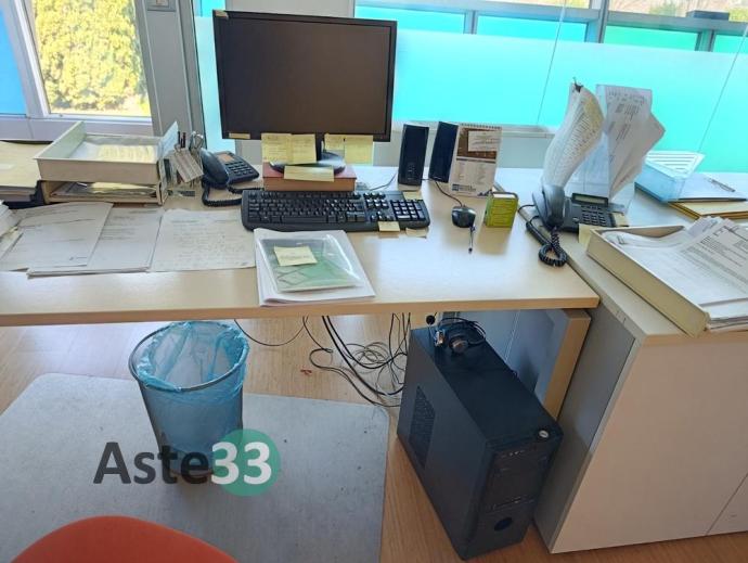Arredamento per ufficio con pc, telefoni, n. 3 scrivanie e n. 6 armadi metallici