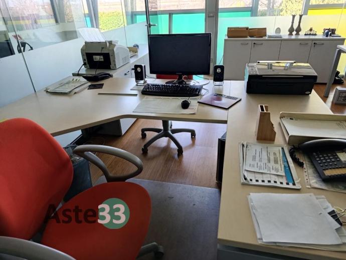 Arredamento per ufficio con n. 2 scrivanie, mobili bassi, poltroncine, informatica, fax Xerox ed affrancatrice