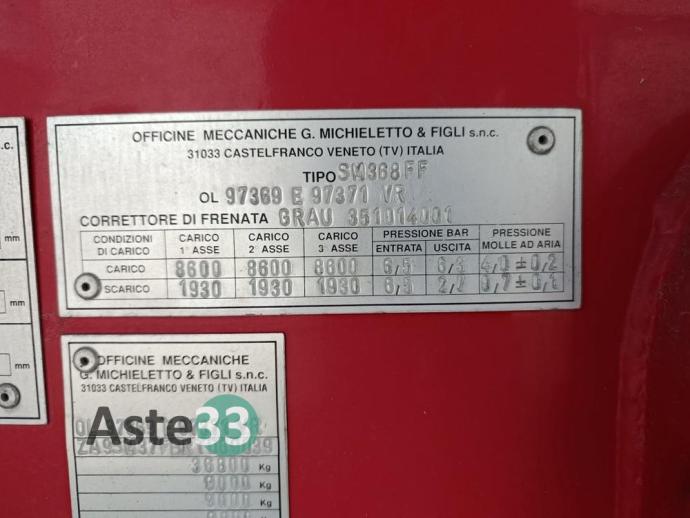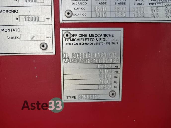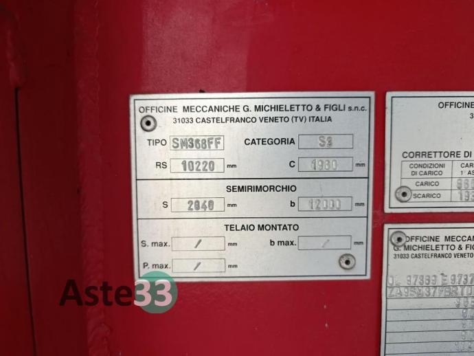Semirimorchio per uso speciale, Michieletto SM368FF, targato AB86446, data di immatricolazione...