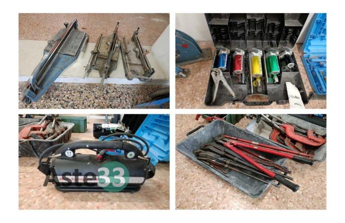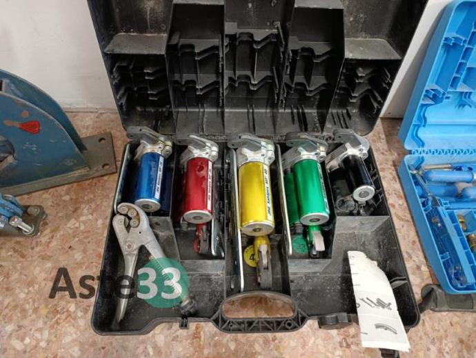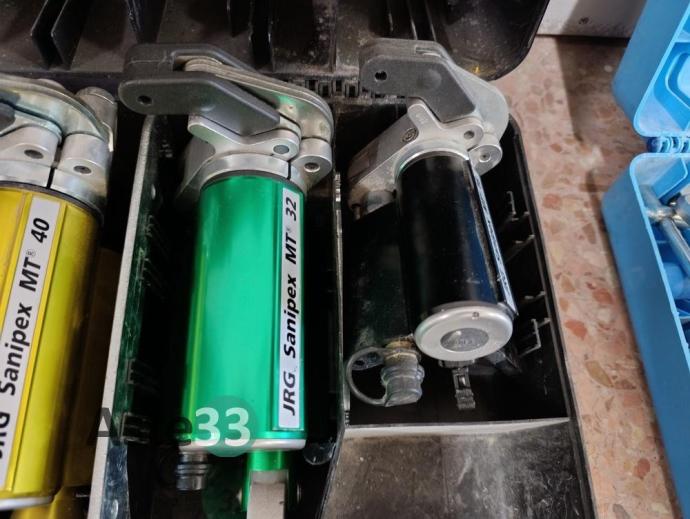 Pinzatrice Jrg Sanipex mt con accessori, varie taglia tubi e giratubi, n. 3 taglia piastrelle manuali