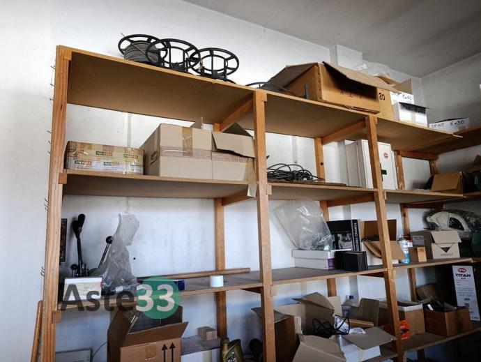Circa 5 mt. lineari di scaffalatura in legno angolare,...
