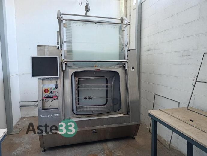 Lavatrice per circuiti stampati marca Meas cz Super Swash ii, con ventola di aspirazione e paranco