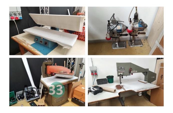 Macchinari per settore tessile – pressa transfer, trancia, sega a nastro, armadietti uso spogliatoio, macchine per cucire ed arredo in sorte