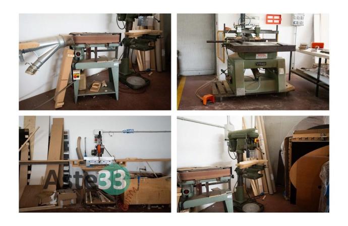 Trapano a colonna Rag, levigatrice a nastro, troncatrice Easy, foratrice Vitap e mola Felisatti