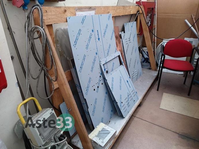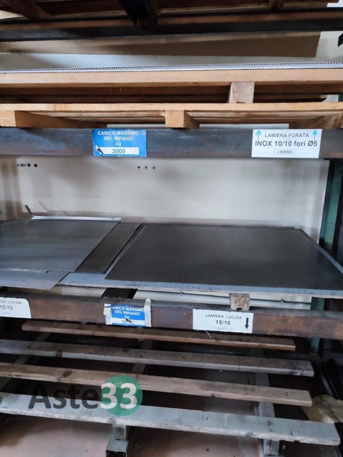 Bancali contenenti materia prima, lamierati, semilavorati metallici, banchi da lavoro, scaffalature, cantilever e materiale in sorte