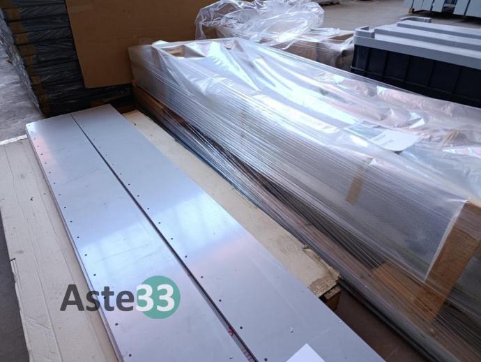 Materiali semilavorati metallici e giacenze di materiale ferroso, bancali con componenti per impianti civili/industriali e carrelli con reggiatrici