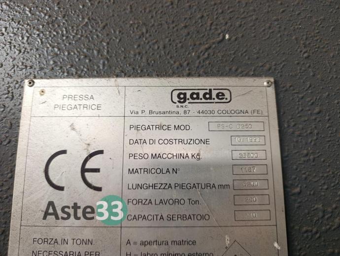 Pressa piegatrice G.A.D.E. PS-C 6250