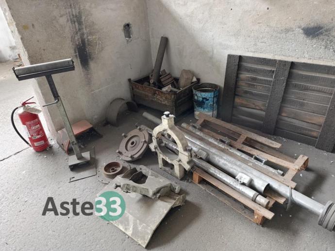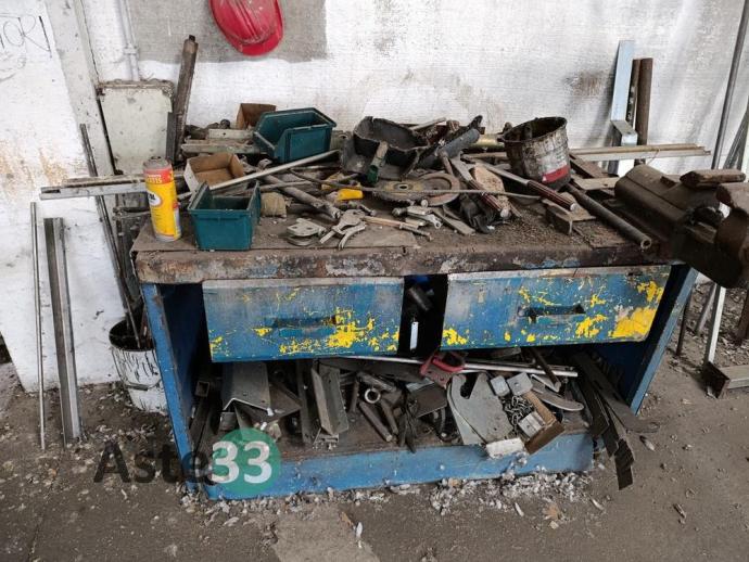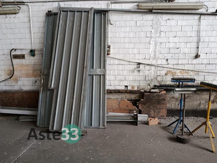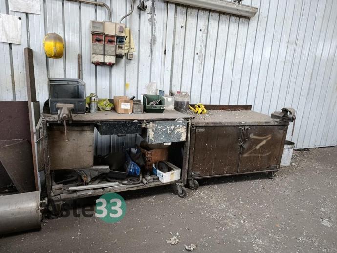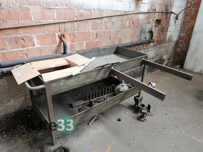 Scaffalature metalliche, banchi da lavoro, tavoli, attrezzature in sorte per falegnameria, arredo vario per zona produzione, carrelli e materiale in sorte