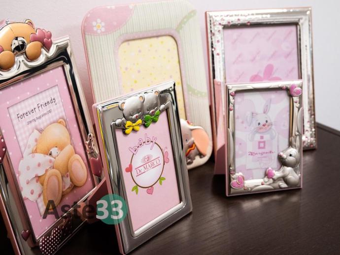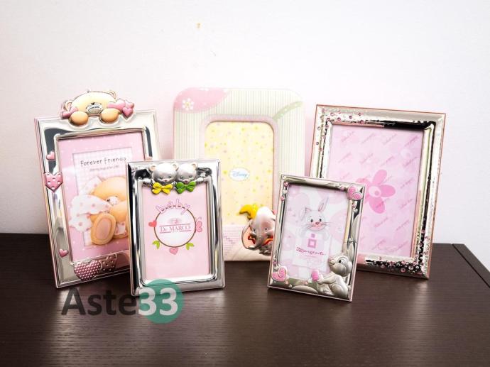n.3 porta ciuccio – n.8 cornici infanzia – n.1 orologio da parete – n.1 carillon – n.1 salvadanaio – n.2 bomboniere – n.2 album dei ricordi