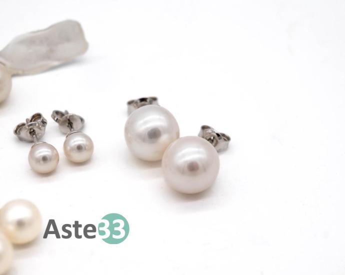N.5 PAIA DI ORECCHINI IN ORO CON PERLA, N.1 COPPIA GEMELLI DA POLSO IN ORO BIANCO