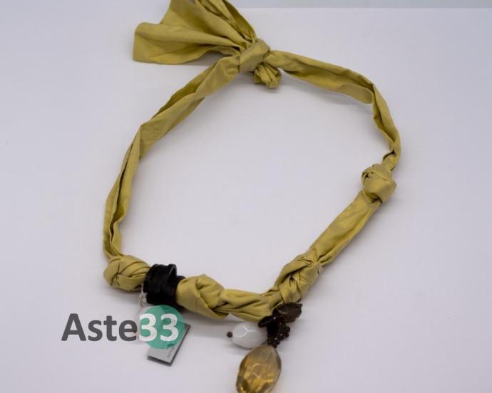 Collana in tessuto verde lime e pietre