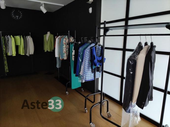 Manichini, tavoli, sgabelli, tappeti, segna presenze, impianto illuminazione per negozio di abbigliamento