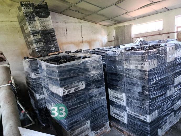 Filtro isobarico Permawine Mini 10+02, scatole per imballo oltre 300 mc, circa 1200 cassette in plastica e n. 14 ceste in plastica