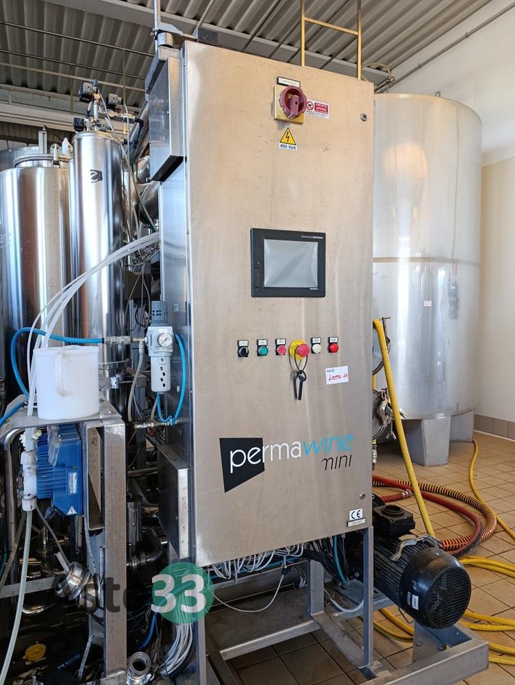 N. 1 filtro isobarico Perma Wine mini, marca PERMEARE mod. PERMAWINE mini 10+02 Matr. R039/R484C//2012, anno 2012, gruppo acqua tecnologica e serbatoio Permeare capacità 1000 lt.