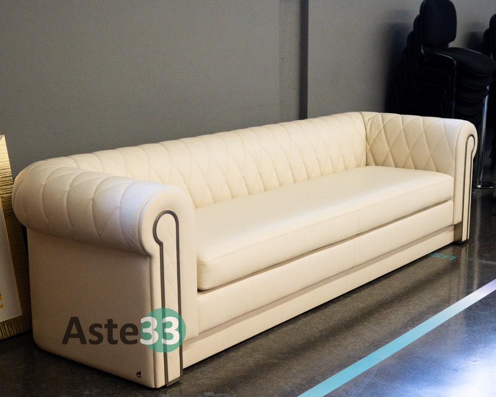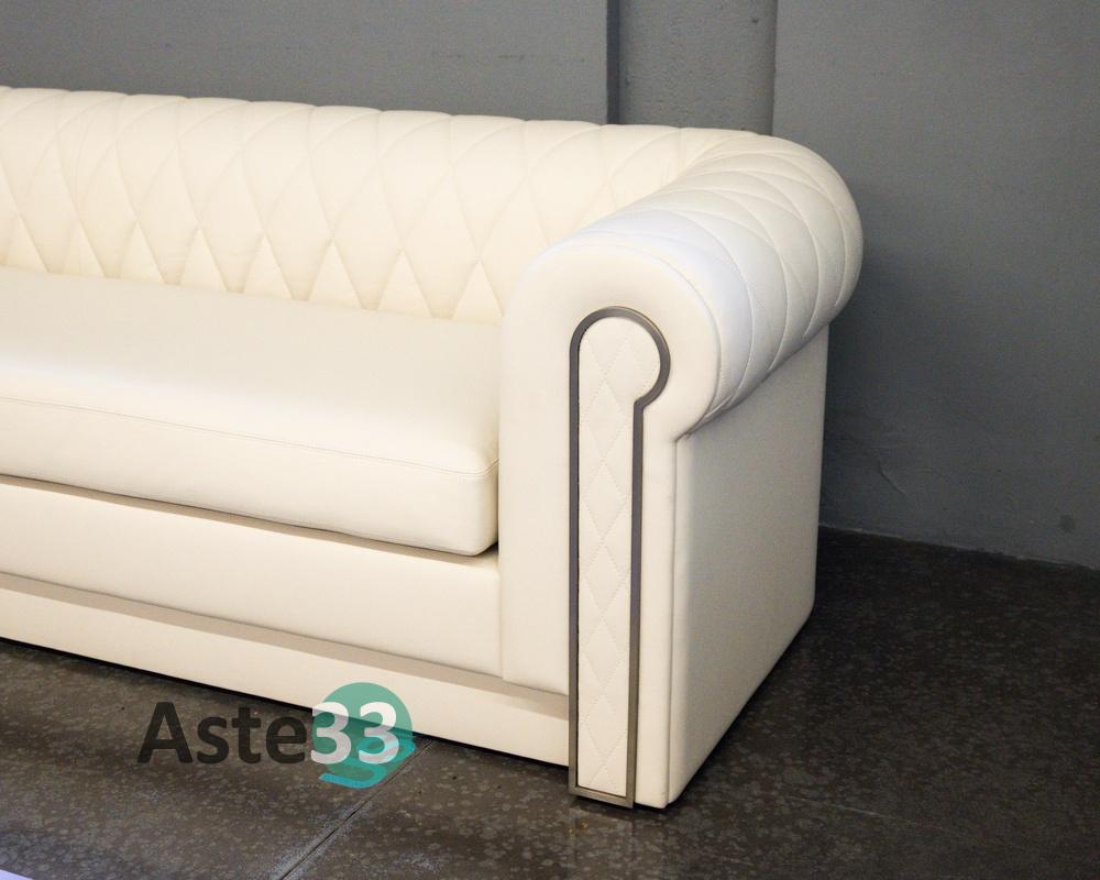 Divano in pellame trapuntato color crema