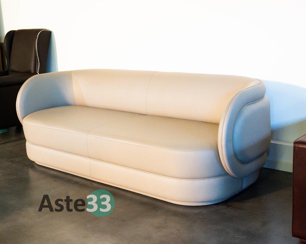 Divano in pellame color grigio chiaro, dimensioni di circa cm. 222x95x75 h.