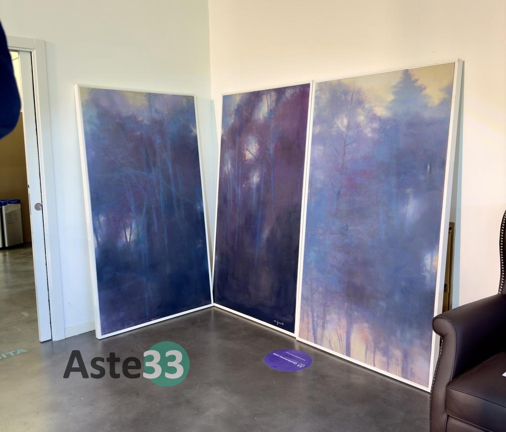 N.3 quadri con soggetto “foresta”, dimensioni di circa cm. 100x180, con cornice bianca.