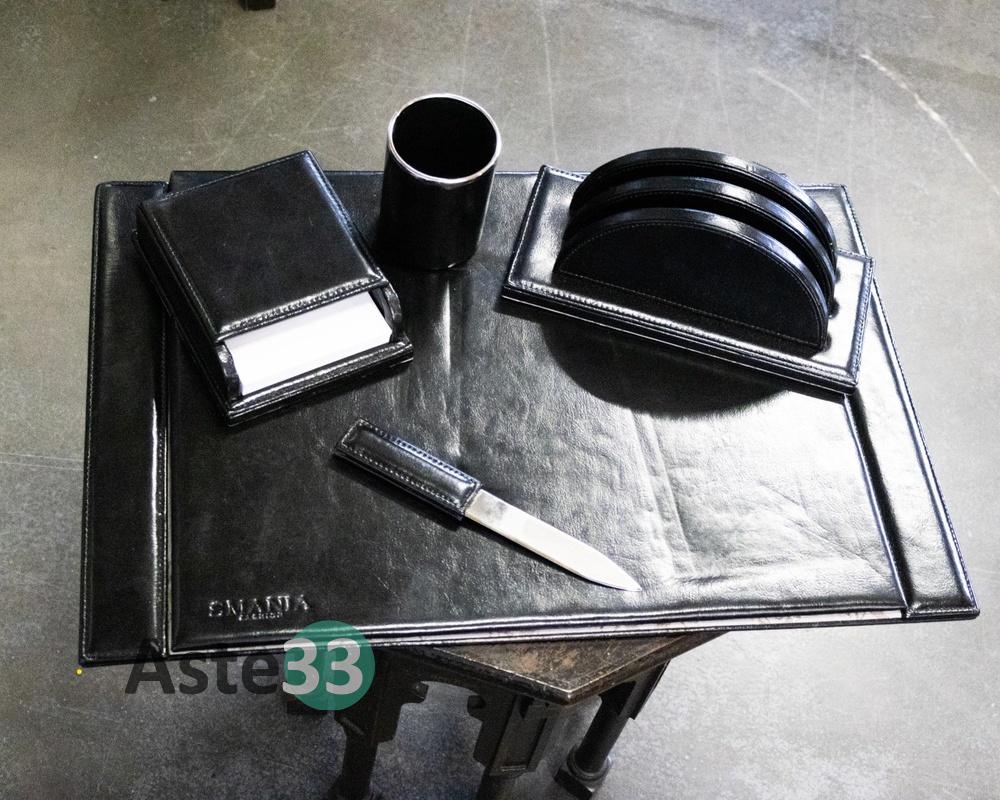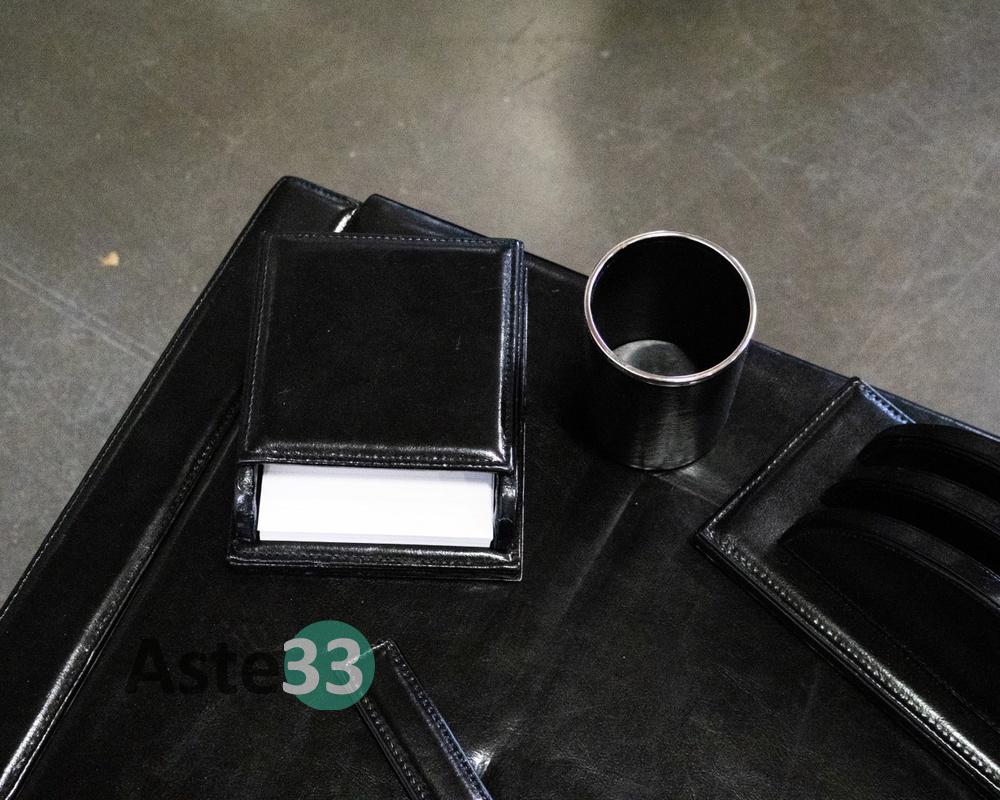 Set da scrittoio composto da 5 pezzi in pelle Bycast nero.