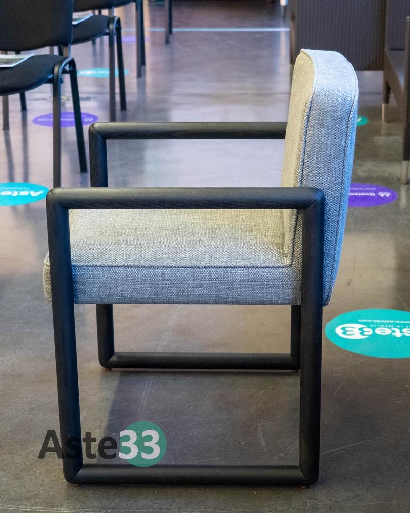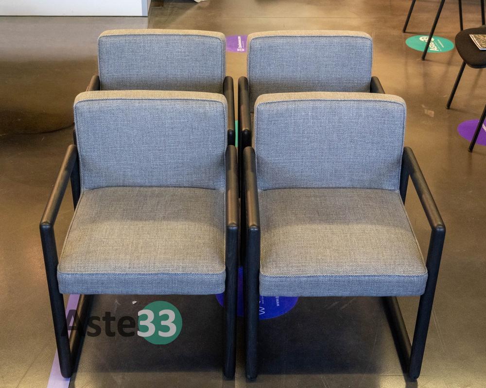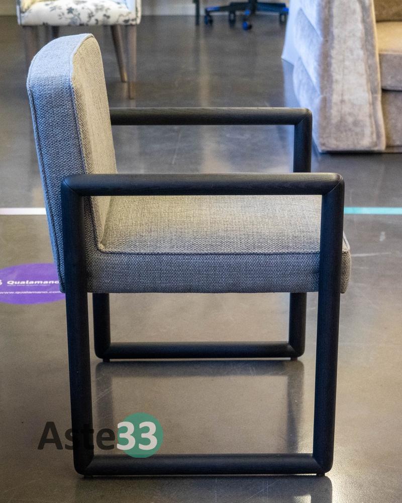 N. 4 sedie imbottite fisse a densità differenziata modello Antillia, con struttura in massello di frassino tinto e rivestimento cielo color antracite, dimensioni 60x60cm x altezza 78cm.