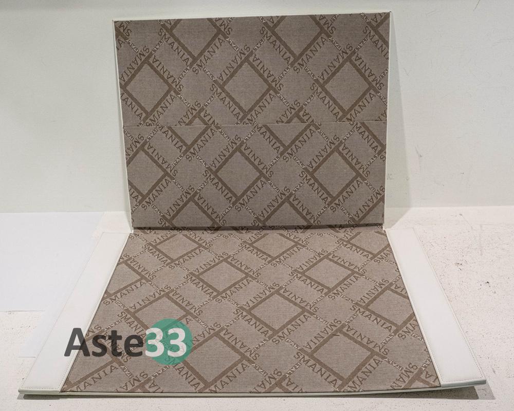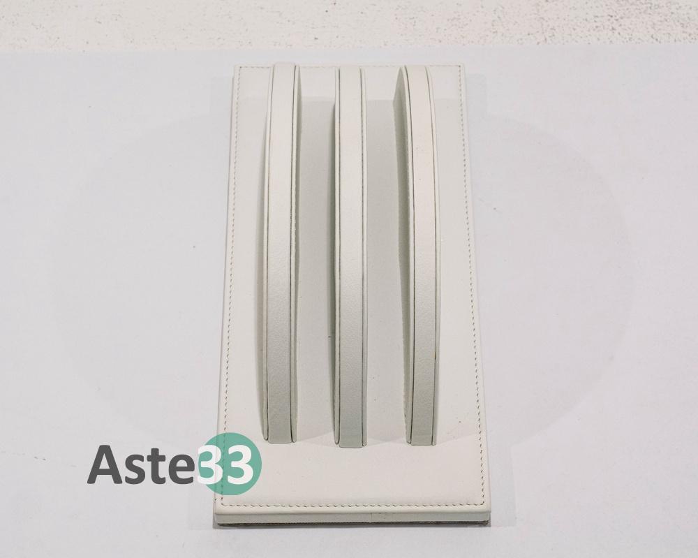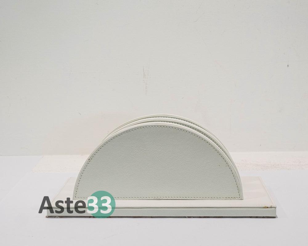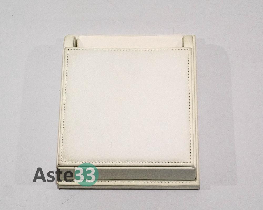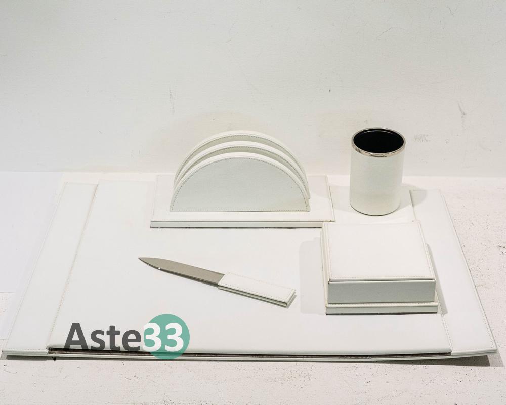 Set scrittoio composto da 5 pezzi in pelle bianca.