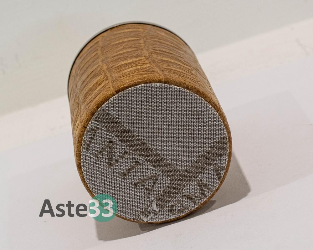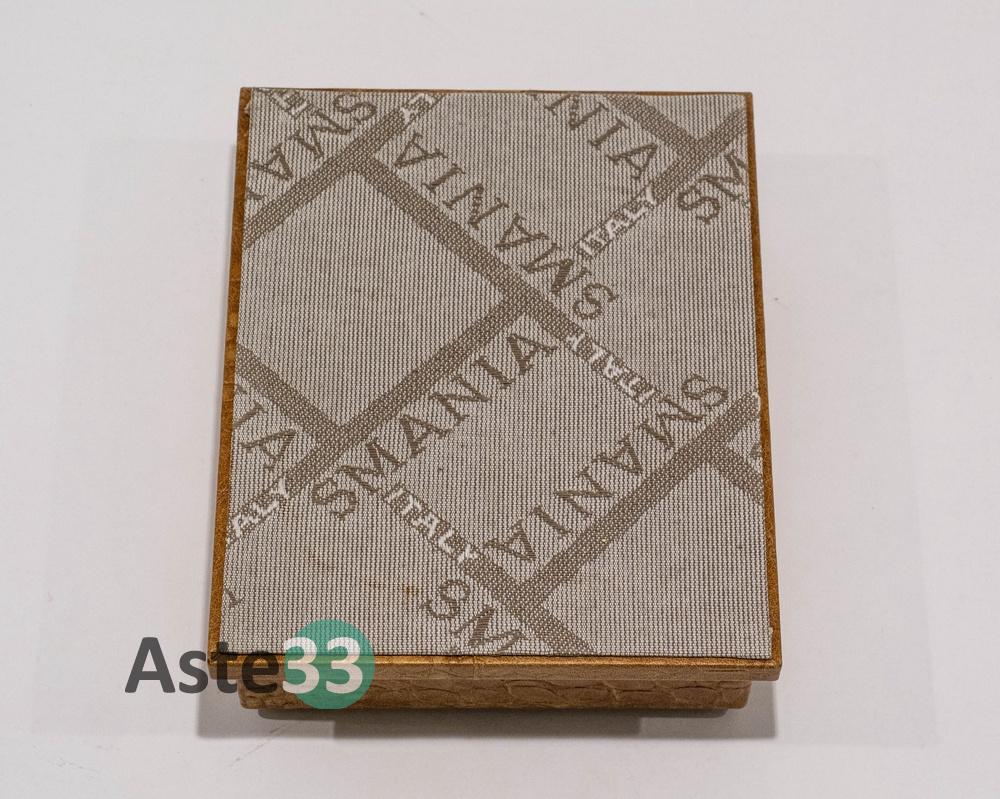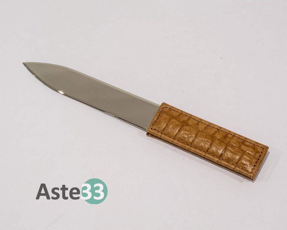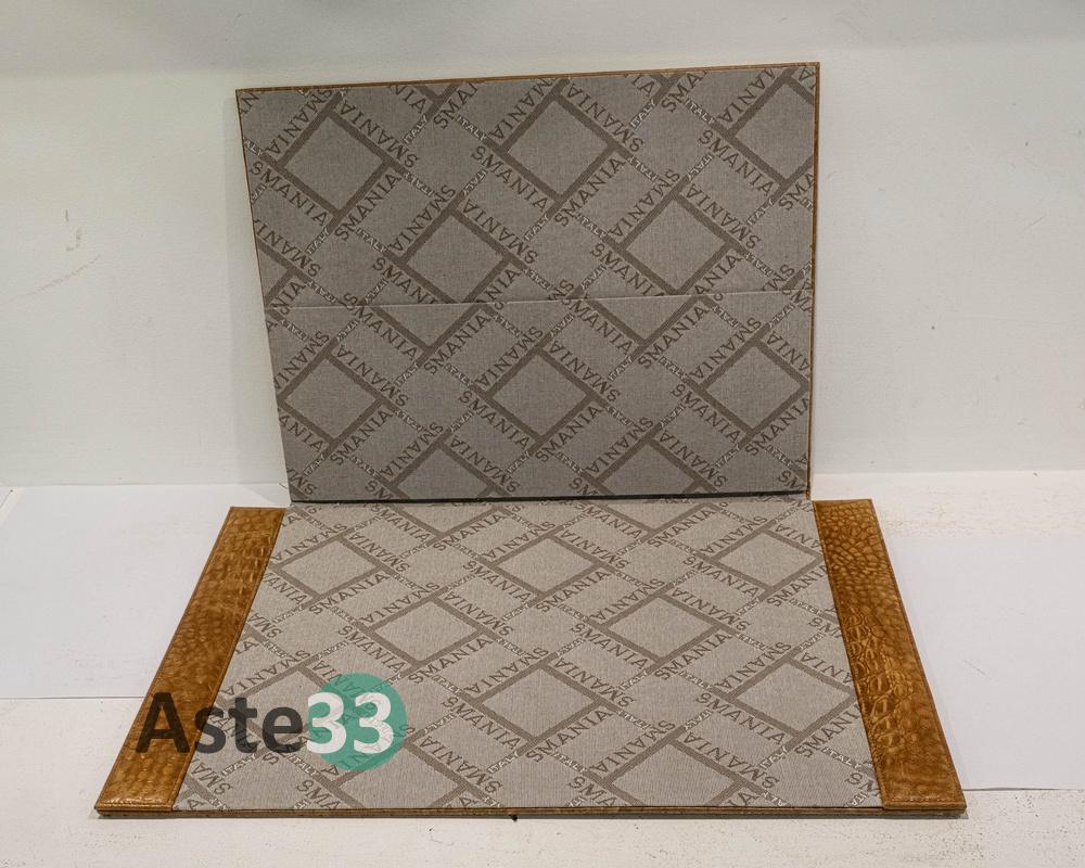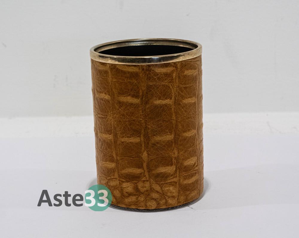 Set scrittoio composto da 5 pezzi in pelle marrone chiara stampa coccodrillo.