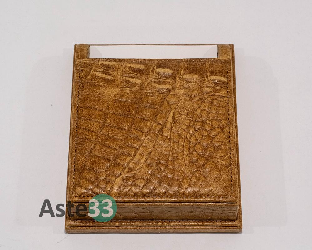 Set scrittoio 5pz pelle coccodrillo marrone