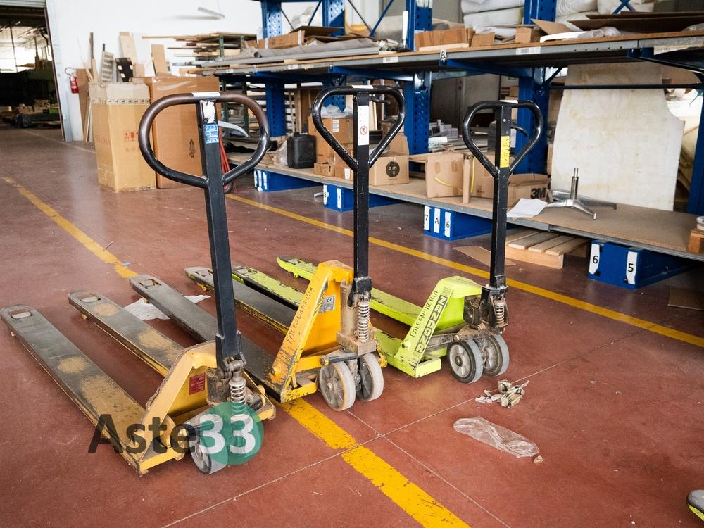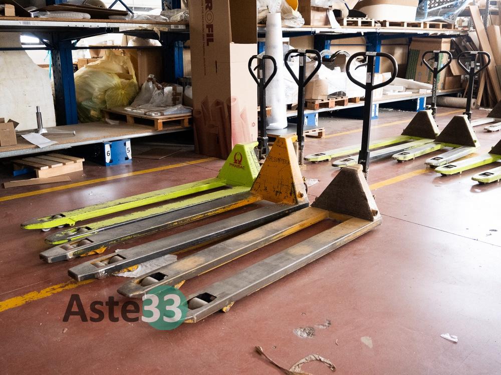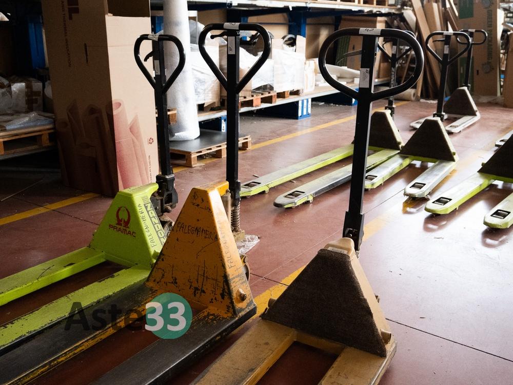 N. 1 transpallet manuale PRAMAC;N. 1 transpallet manuale a forche lunghe;N. 1 transpallet manuale a forche lunghe.