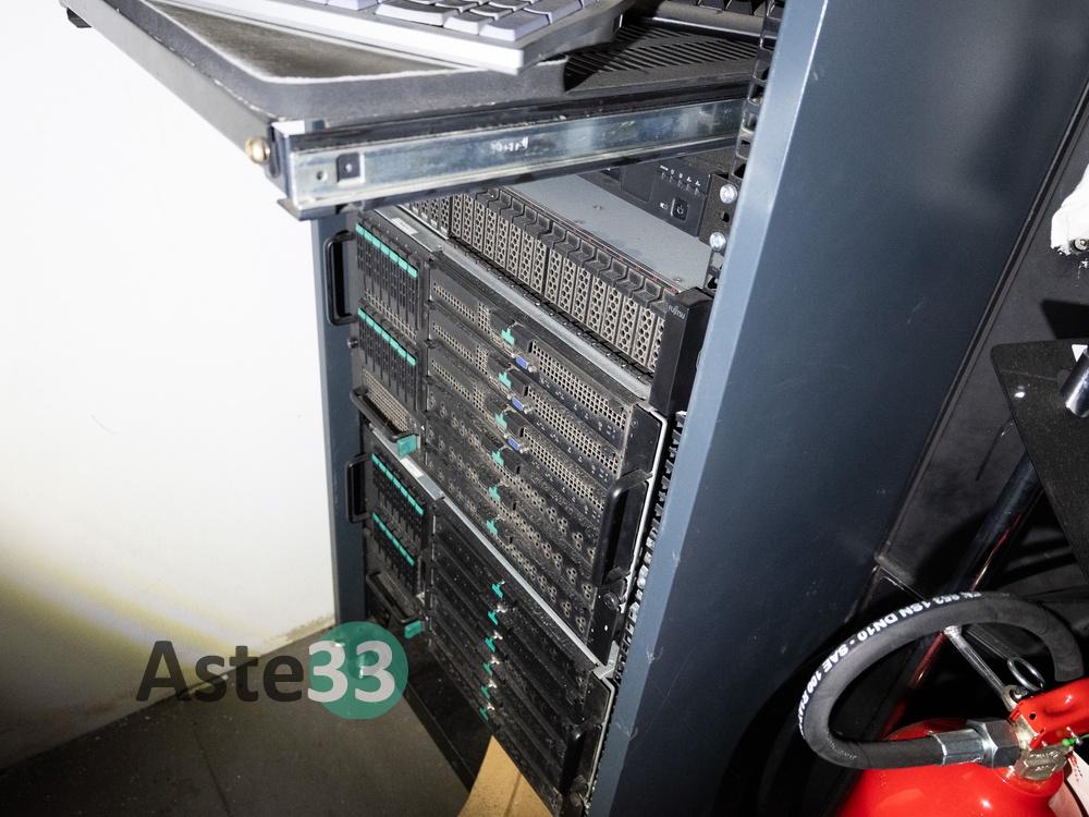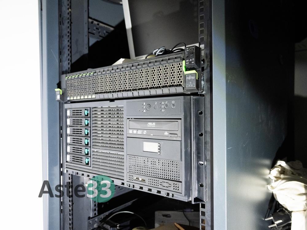 N. 1 armadio rack contenente: n. 1 server FUJITSU Mod. Primergy RX2540ML, n. 1 monitor BENQ, n. 1 unità con sei slot, n. 2 tastiere, n. 1 mouse, n. 1 server ETERNUS DX60S3, n. 1 server Synology RS214, n. 1 server a quattordici dischi, n. 1 server a tredici dischi;