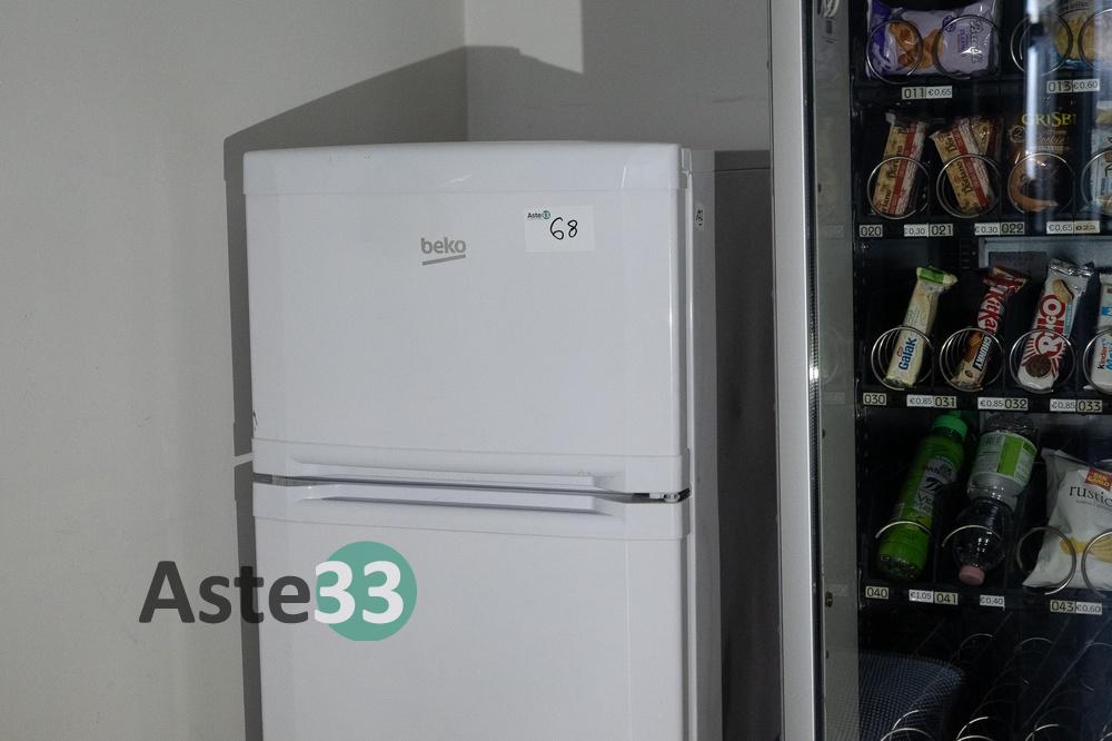 Frigorifero Beko, microonde Daewoo, macchina per caffè, specchi, sedia in vimini, divanetto intrecciato, tavolini e mobile a tre ante
