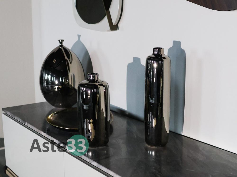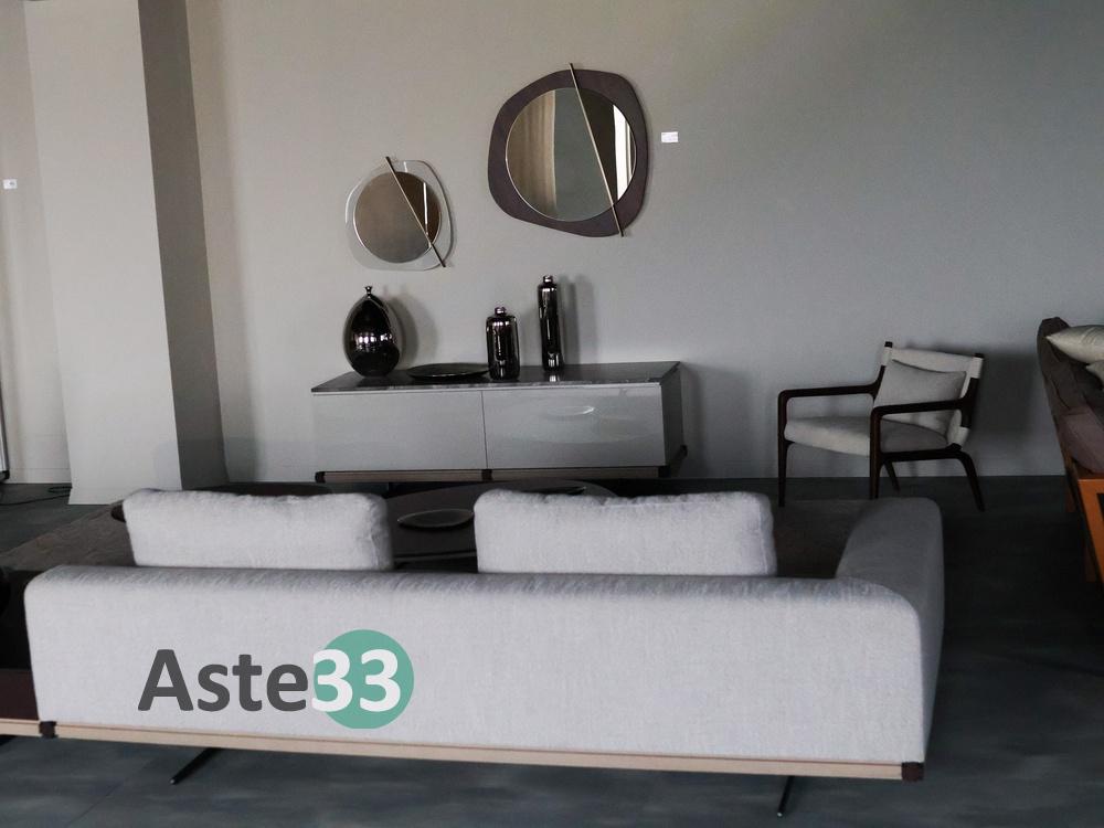 N. 1 tappeto in tessuto dim. 300x400 cm; N. 1 divano a tre posti con tavolino centrale in tinta wengè; N. 1 mobile con due cassetti e piano in marmo; N. 2 tavolini bassi; N. 1 poltroncina in legno; N. 2 specchi; N. 8 elementi di decoro di vario tipo.