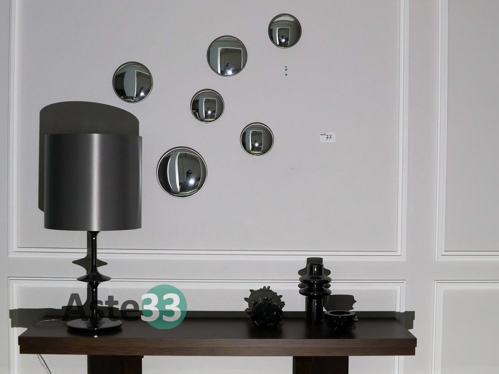 N. 1 boiserie a specchi della lunghezza di circa 500 cm;N. 1 boiserie in tinta noce della lunghezza di circa 700 cm; N. 1 tavolo in ceramica; N. 1 poltroncina con rivestimento in velluto; N. 1 lampada a piantana; N. 1 lampadario a tre elementi; N. 1 tavolo consolle in noce; N. 1 lampada abatjour; N. 9 elemetni d'arredo di vario tipo;Circa n. 40 metri...