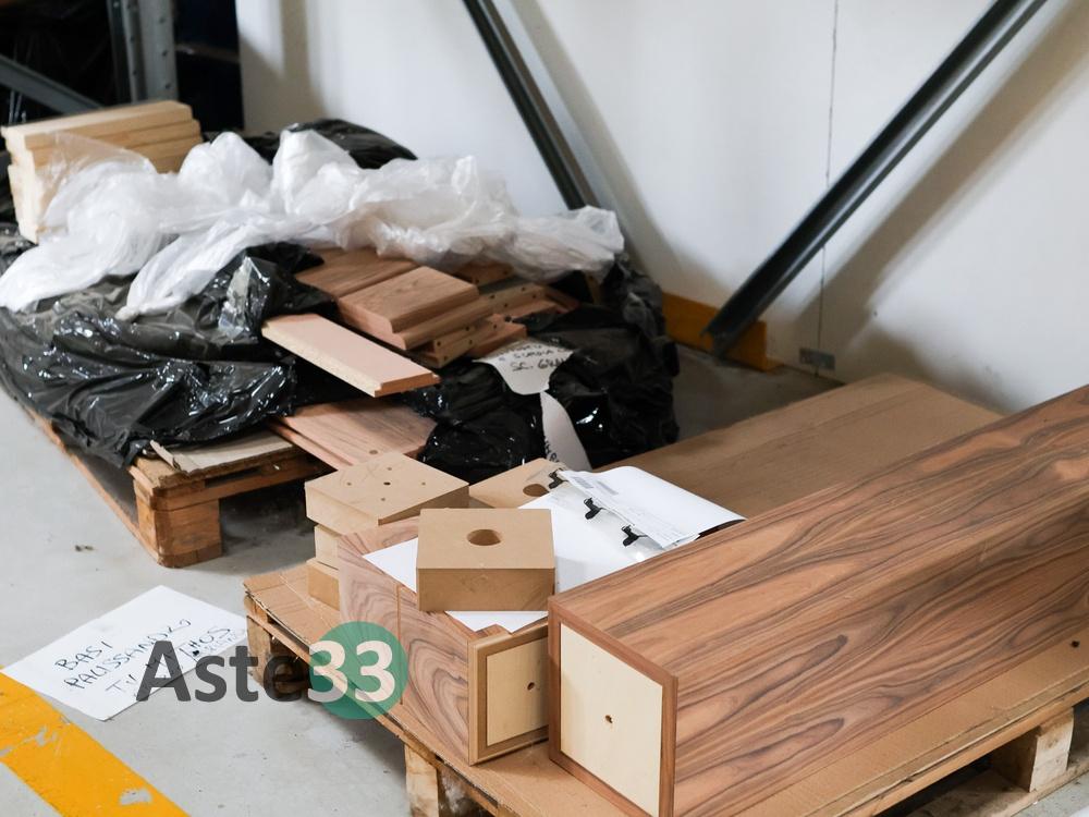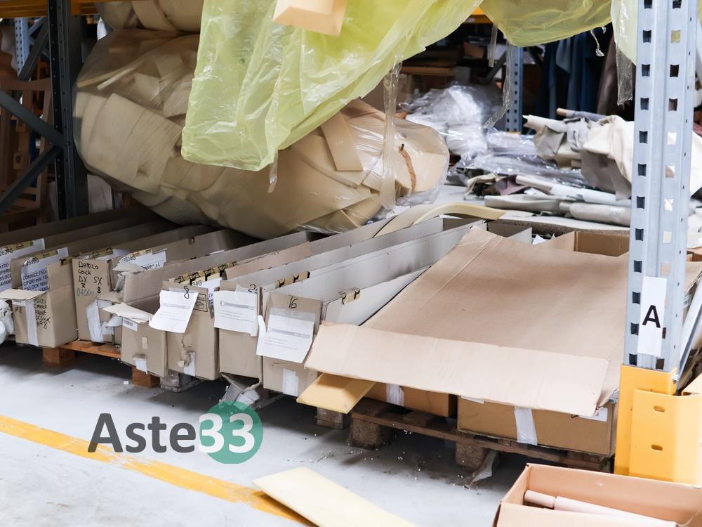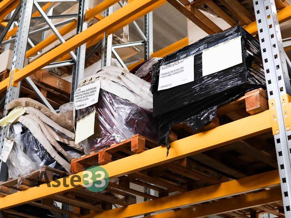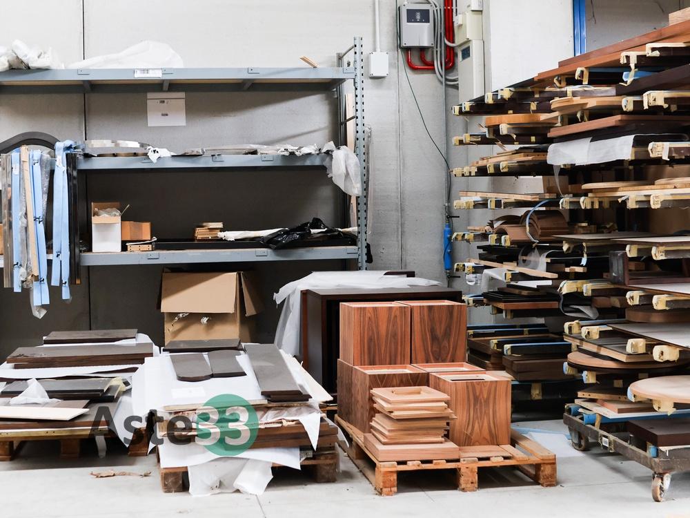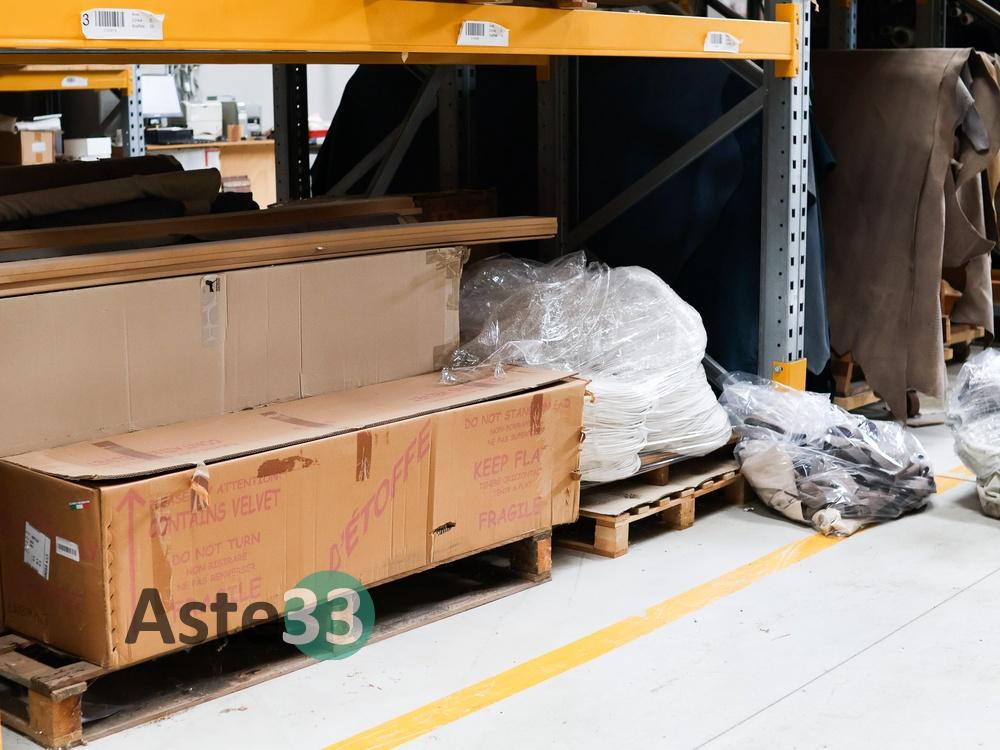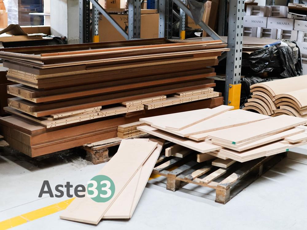 Varie giacenze di magazzino composte da materiale semilavorato, prodotto finito, accessori e materie prime per la composizione di arredamento (es: tessuti, pellame, stoffe, legname varie essenze, semilavorati, accessori per macchinari, materia prima, viteria e minuteria, ferramenta, arredi da assemblare e da finire, ecc).