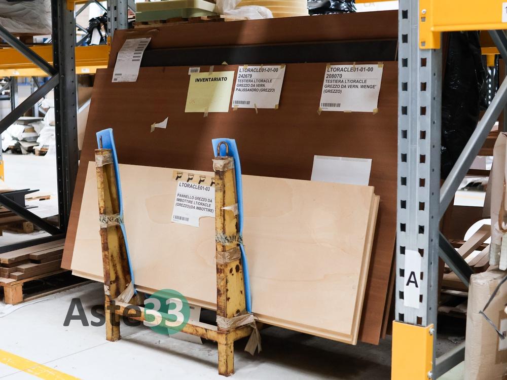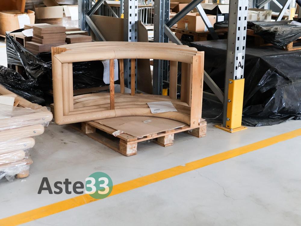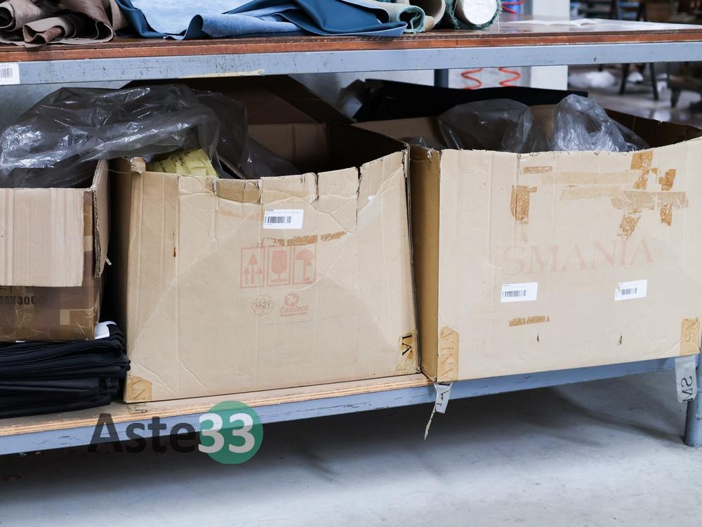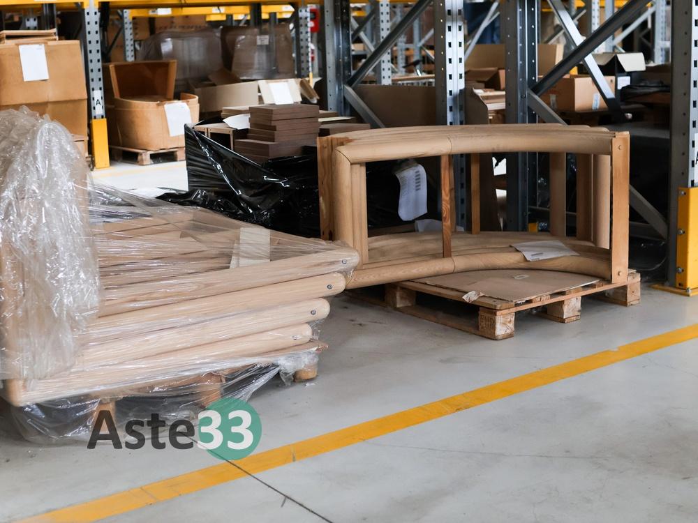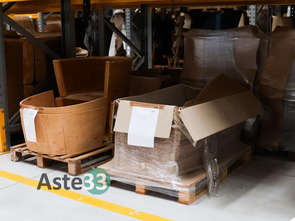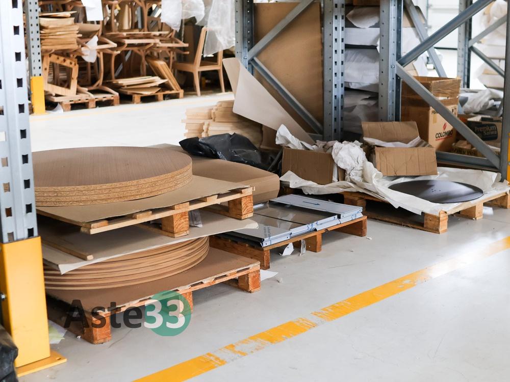 Varie giacenze di magazzino composte da materiale semilavorato, prodotto finito, accessori e materie prime per la composizione di arredamento (es: tessuti, pellame, stoffe, legname varie essenze, semilavorati, accessori per macchinari, materia prima, viteria e minuteria, ferramenta, arredi da assemblare e da finire, ecc).